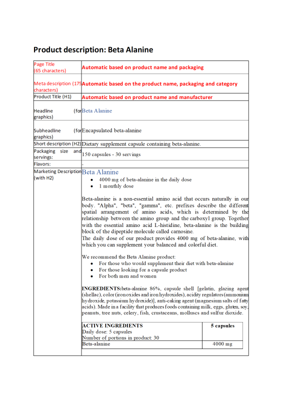 Beta Alanine 150 caps label, Beta Alanine 150 caps multi